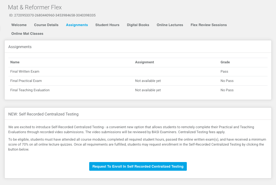 We are excited to offer Self-Recorded Online Testing for Mat, Mat and Reformer, and Comprehensive students!